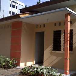 Selanjutnya untuk atapnya, bisa menggunakan atap dasi seng gelombang. Atau bisa juga diganti dengan atap asbes dan kerangkanya memakai rangka besi siku. Dan untuk lantainya berupa lantai rabat yang dibuat dari adonan semen dan pasir dengan perbandingan satu dan empat. Meski tidak memakai lantai ubin, tapi lantai rabat ini tetap bisa memenuhi standar kesehatan dan rumah layak huni.