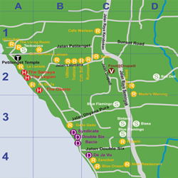 hotel dan villa yang terdapat di Seminyak. Hotel dan vila tersebut memiliki fasilitas yang sangat lengkap. Fasilitas tersebut di antaranya adalah kolam renang pribadi, café, bar, restaurant, spa, maupun tempat olahraga seperti lapangan golf, gymnastium, dsb. Desain-desain yang digunakan dalam bangunan tersebut kebanyakan menggunakan gaya Bali modern. Sebagian hotel juga dilengkapi dengan gazebo pribadi sebagai tempat untuk menikmati santapan. Ada juga hotel mewah yang menggunakan atap jerami sehingga terkesan sangat unik.